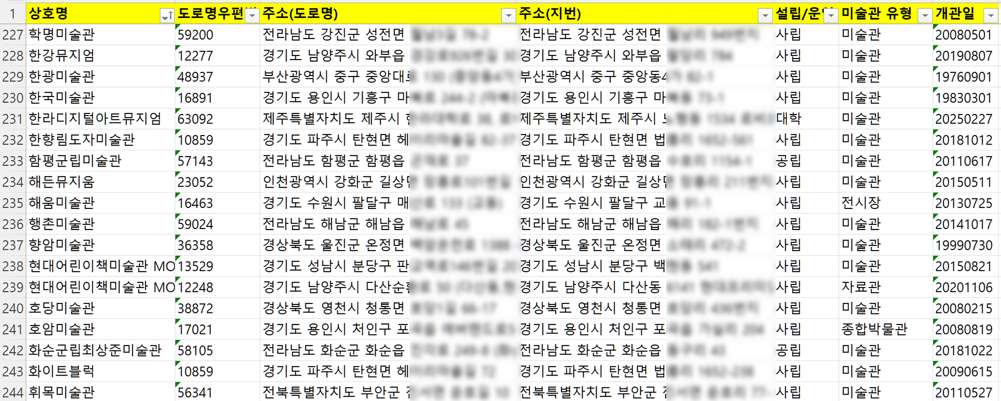 | 최신 박물관 리스트 주소록 DB (0) | 2026.03.01 |
